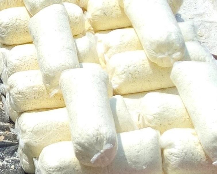 Le circuit long concerne l’acheminement de l’attiéké vers Abidjan, la capitale économique du pays, où l’attiéké un grossiste fidélisé est chargé de la vente et dans les pays de la sou région (Burkina Faso, Mali). Dans ce circuit, l’attiéké est commercialisé dans des paquets. Le conditionnement de l’attiéké dans du plastique permet de lutter contre l’humidité et favorise une bonne conservation. Cependant, l’emballage en plastique peut céder à tout moment, occasionnant des dégâts et des pertes énormes.