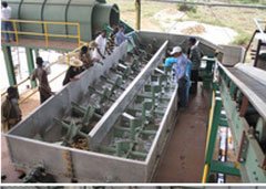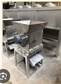 Le broyage est une opération mécanisée qui s’effectue dans un moulin. Le broyage consiste à moudre les morceaux de manioc pour obtenir une pâte.Le ferment est trempé dans de l’huile de palme raffinée avant d’être ajouté au manioc concassé dans le moulin. Par endroits, on ajoute l’huile de palme au manioc concassé pendant le broyage. La pâte obtenue est conservée dans des sacs pendant de longues heures en vue de la fermentation. C’est alors qu’on utilise des sacs dans lesquels la pâte est renversée pour la faire presser afin d’éliminer l’eau.